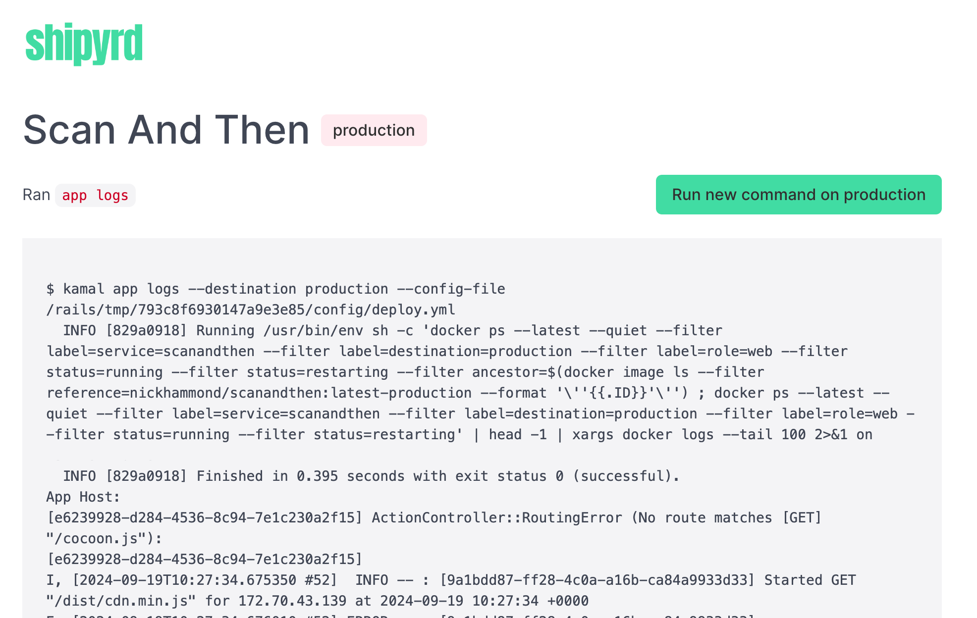 It’s now possible to run manual one-off kamal commands on your server via Shipyrd!